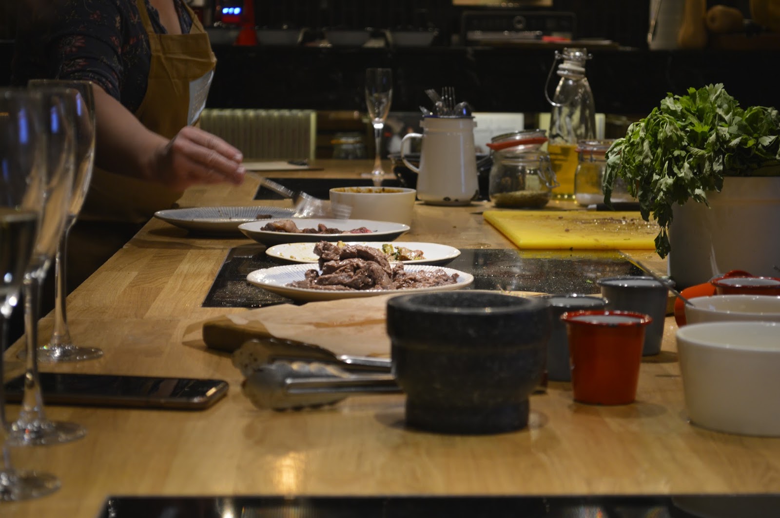 The cooking space is perfect. There is more than enough room for people to co-work, but it's also in a position that everyone can see everyone making the experience a little more social. Whilst cooking you're able to order drinks from the bar as well as ask your chef as many questions as your heart desires.